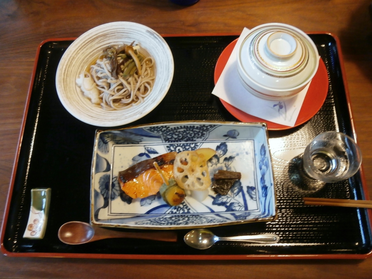 街道筋の端に在る川端屋旅館の1階で魚屋を営む店頭で見つけた鯖寿し一折¥1500が気になっていたので購入し用意されてたベンチでいただきましたが、見立ての通り美味しい鯖の〆方が好い塩梅で、旨いそばには当たりませんでしたがそばまつりのお陰で旨い鯖寿しがいただけました。- 旅行時期