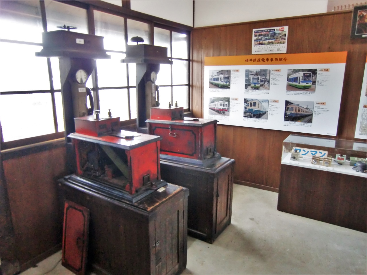 それ以外にも大正13年に西武生駅として開業した駅舎は国の登録文化財に指定され今回は大幅リニューアルにより待合室や改札などは綺麗に成り、事務所はギャラリースペース”福井鉄道の歩み”として当時の貴重な備品や資料に写真などが展示される資料館に成っていました。