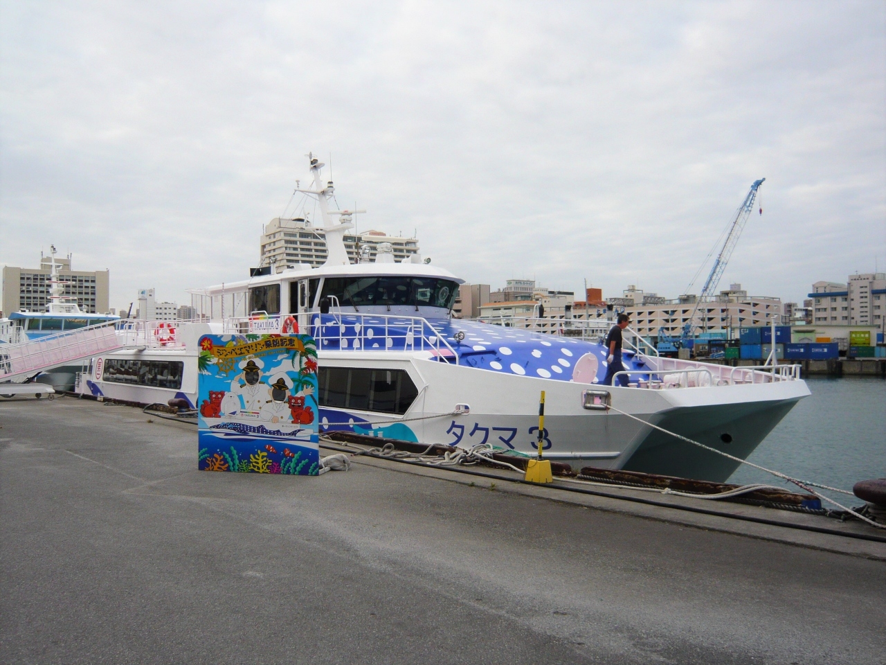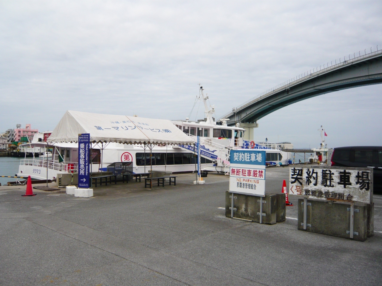 那覇市内の泊ふ頭旅客ターミナル、愛称・とまりん北岸壁から就航してる「第一マリンサービス」は県北部の観光スポットの中心地である本部港(渡久地港)へ名護港経由で毎日4便運航しています。