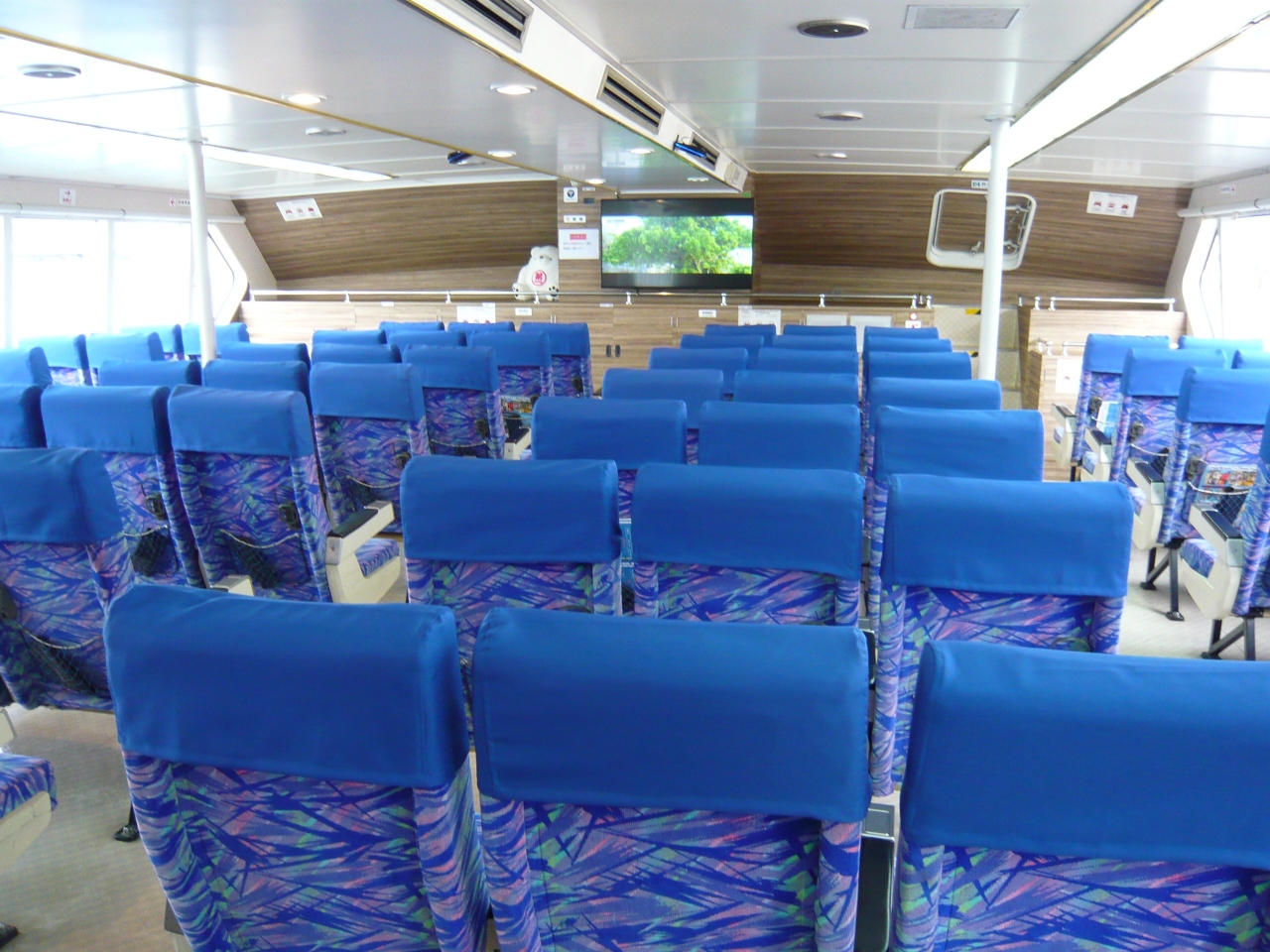 但し、乗客定員180名の大型高速船ですが港を出れば揺れることは必然ながらあるので船酔いする方にはお薦め出来ません。