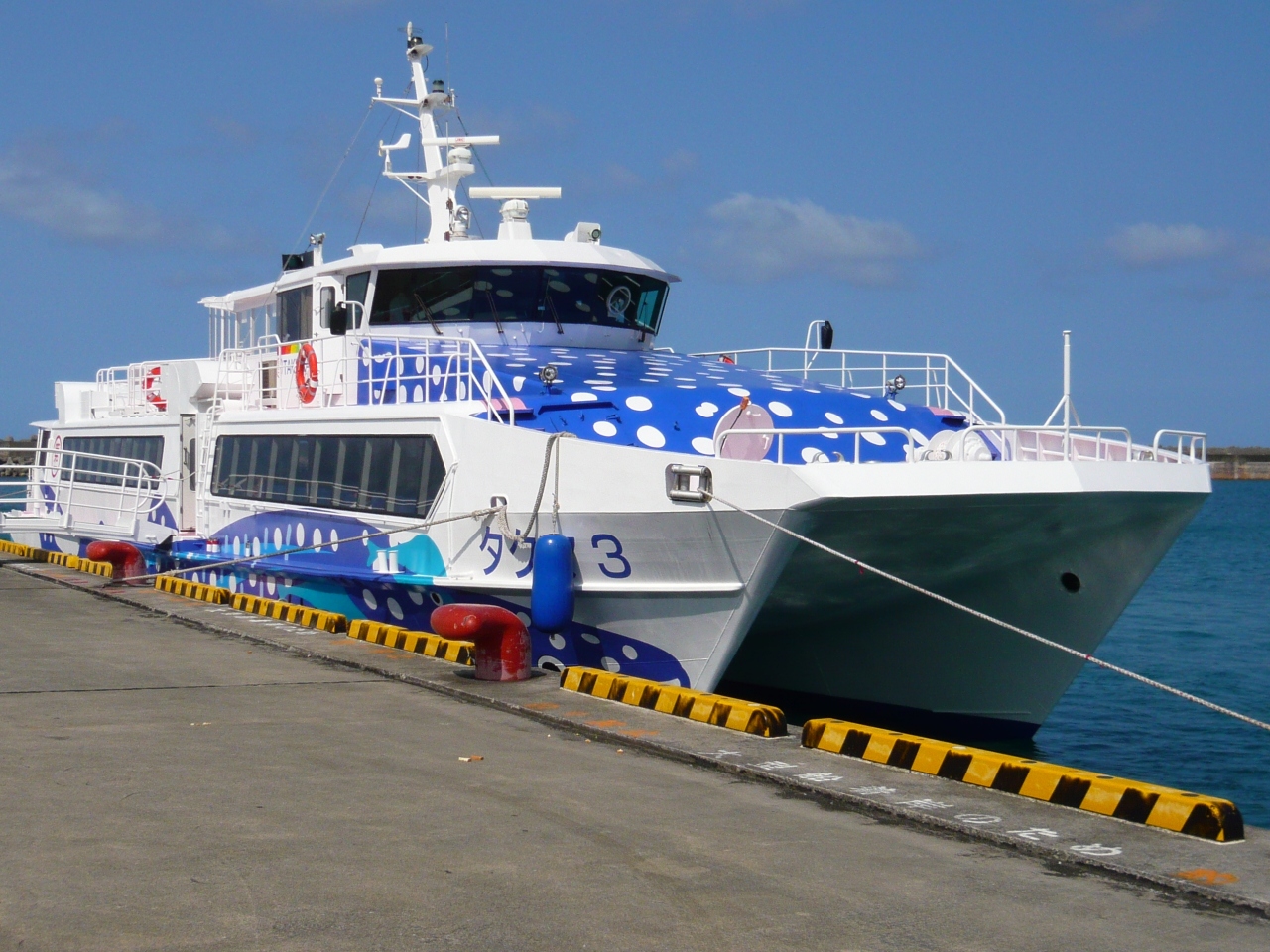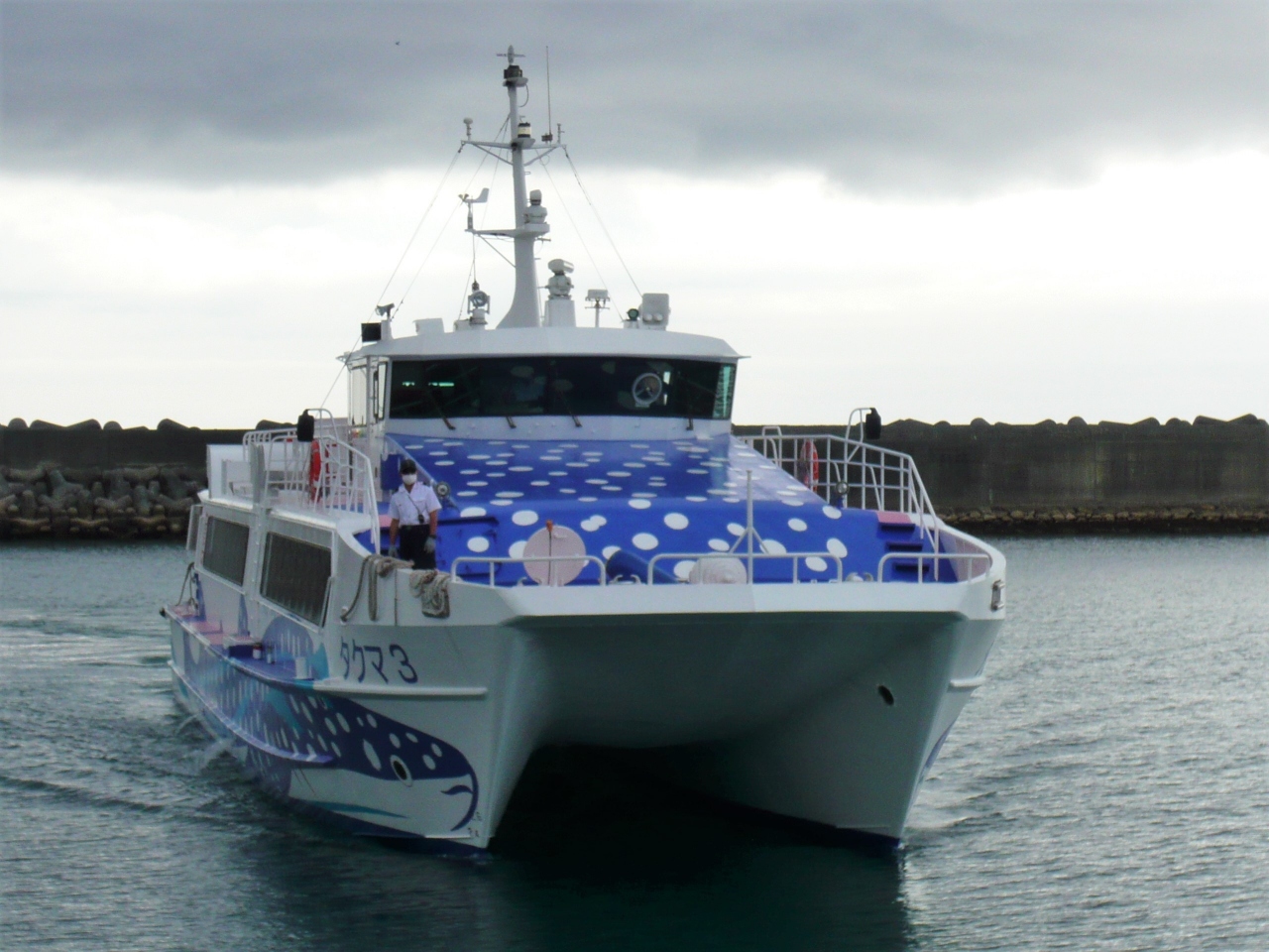 しかも就航船は双胴船の巡航速度30ノット(時速56km)を誇る高速船で僅か75分という速さでしかも渋滞知らずです。