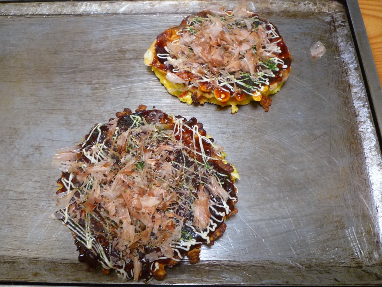 久々に鏝で切りながら熱々フウフウしながら口に入れれば旨い!、表面はパリッと食感はふっくらと仕上げるご主人の腕は大したもので、生地の味もメリケン粉に和風出汁を足して仕上げような旨味がしっかりとしてました。