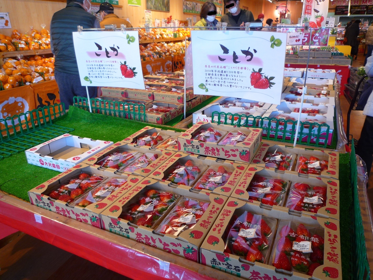 昔から関西では苺と言えば奈良と言われるほど有名な産地で、幹線道路沿いやビニールハウス付近には農家の直売所が苺の幟を立てて販売してましたね。