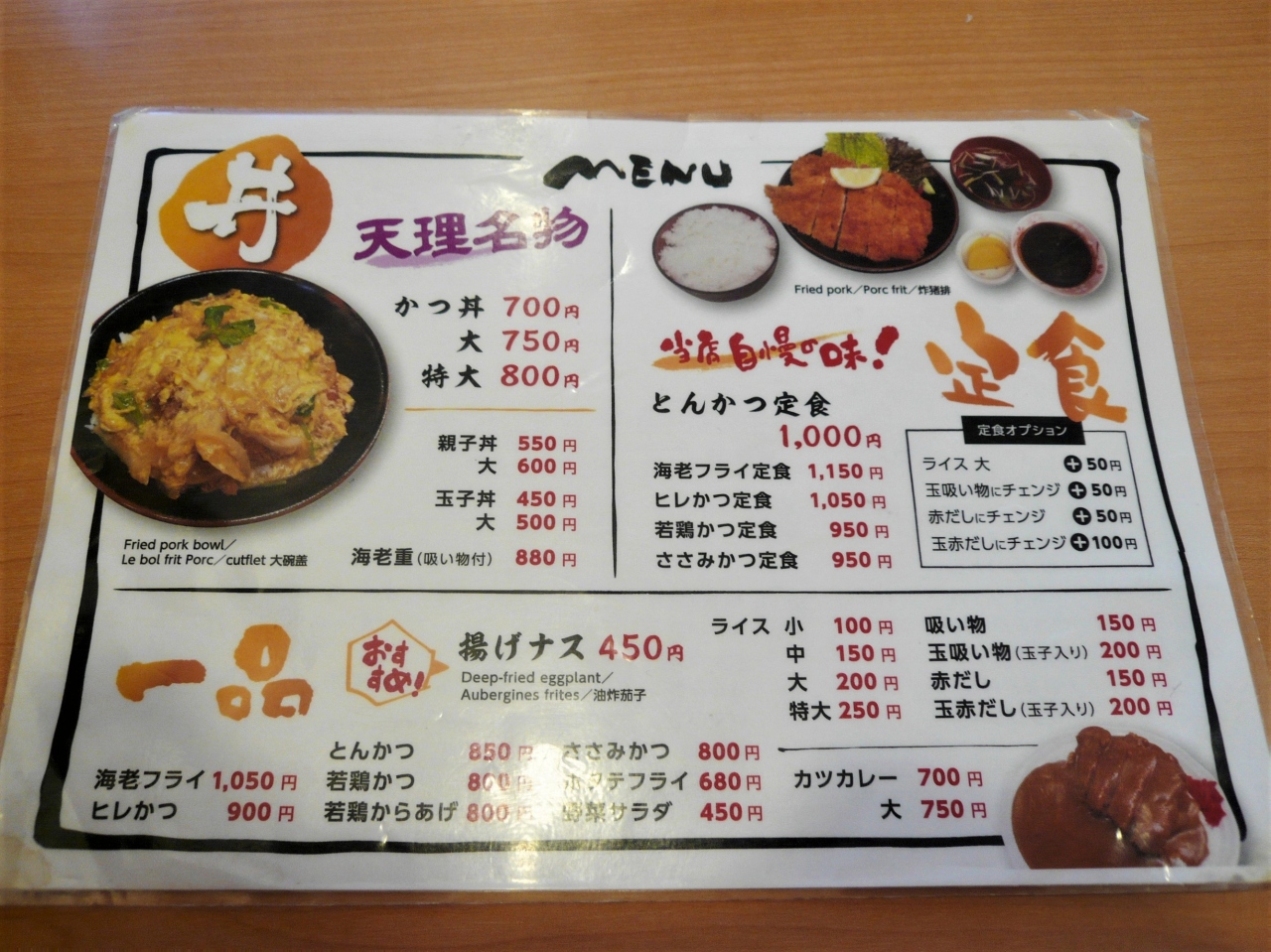 メニューを見る前から今回はかつ丼と決めていたので早速注文をしました~、でメニューを見れば天理名物・かつ丼とあったのでB級グルメだったとは知らなかったですね?。
