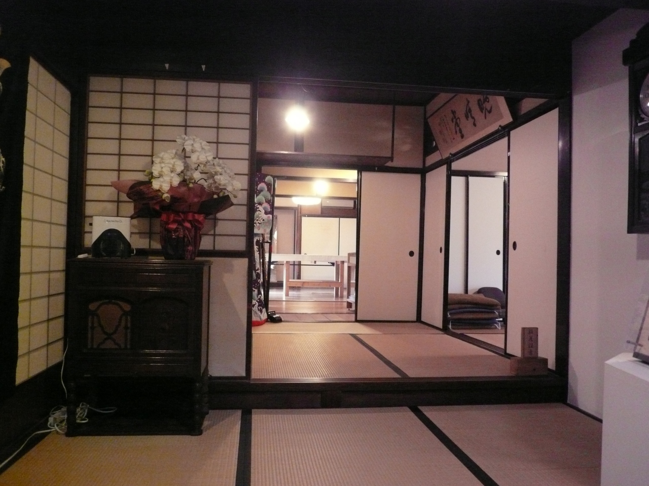 当然ながら手直し修復はされてますが、白壁にこげ茶色の柱と梁を有し、天井は大型桝格と成ってるのは大正モダニズムの影響でしょうか?。