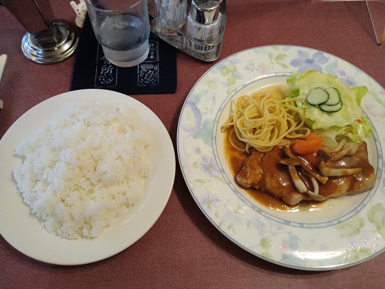 オムライスやドリアは人気のようですが洋食屋と言えばやはりハンバーグステーキは外せないですね!、家内はポークチャップステーキにしました。