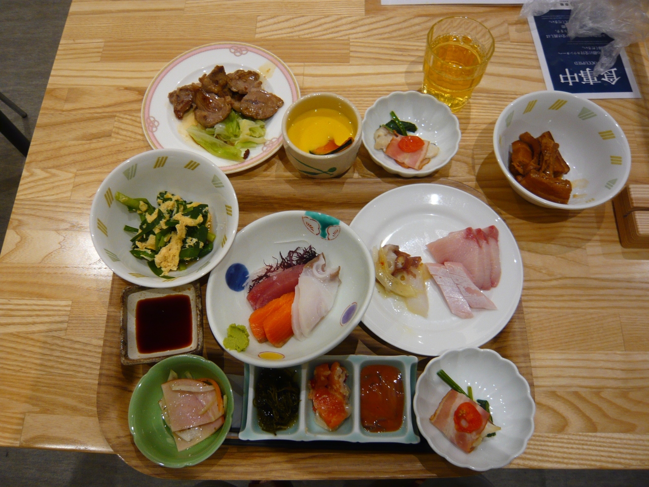 朝食は昨夜の残った刺身の漬けにや烏賊刺しに鱒子・塩からは良いね~、ライブキッチンは目玉焼きではなく出汁巻きににして欲しいなあ?~、蒸し野菜やポテトサラダは意外ですが美味しかったです。