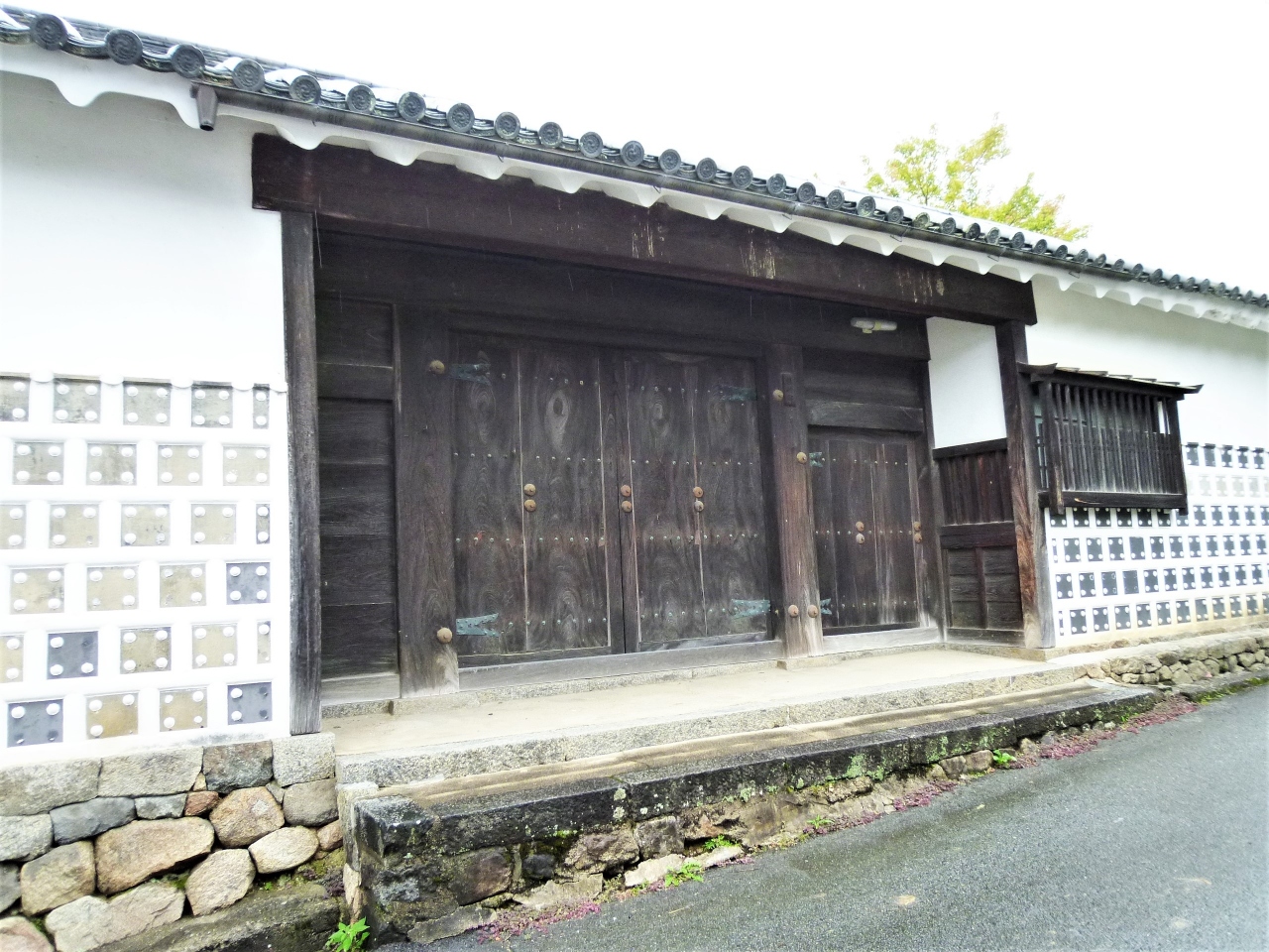 堅牢な石垣を要し腰板張りに施された海鼠壁の漆喰・意匠が優雅であり、且つ威厳を持ち堂々たる風貌も感じる実に美しい武家門です。