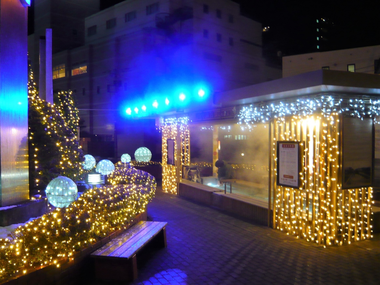 手を入れた感じでは夜は少し熱めと温度調整がされてるので12月の冷える夜でも問題ないようですよ?、地元の方が利用されてました(朝も利用者が居ました)。