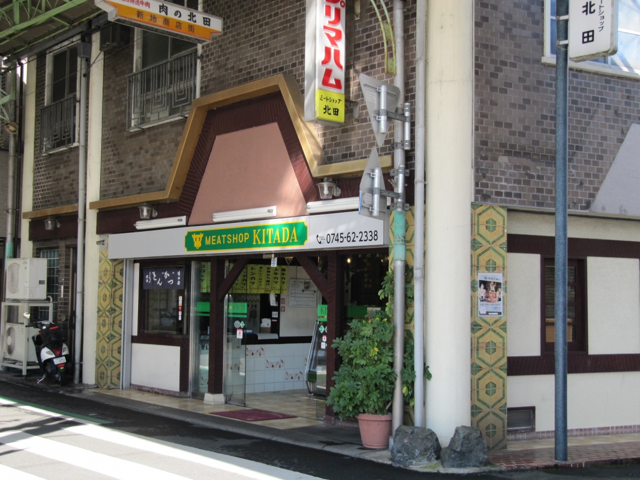 御所のまちは新地商店街の中に在る昔ながらの精肉店「ミートショップ北田」で昔ながらの揚げ物を購入しいただきました。