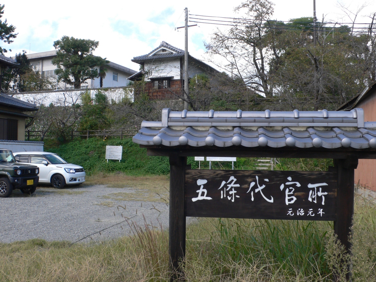 無料駐車場を利用する方は交差点を入らずそのまま50m先に”五條代官所”という看板が在るのでそこへ入れます。