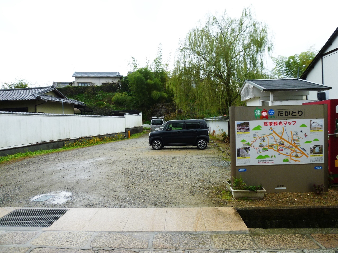 同敷地内には数十台の無料駐車所が在り便利なのですが旧土佐街道が一方通行なので壺阪寺駅方面の北からしか利用出来ないので注意が必要です。