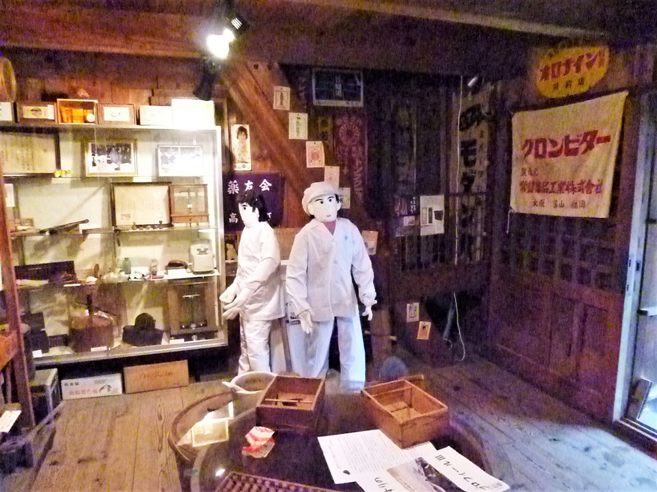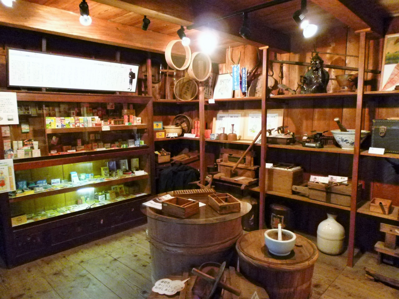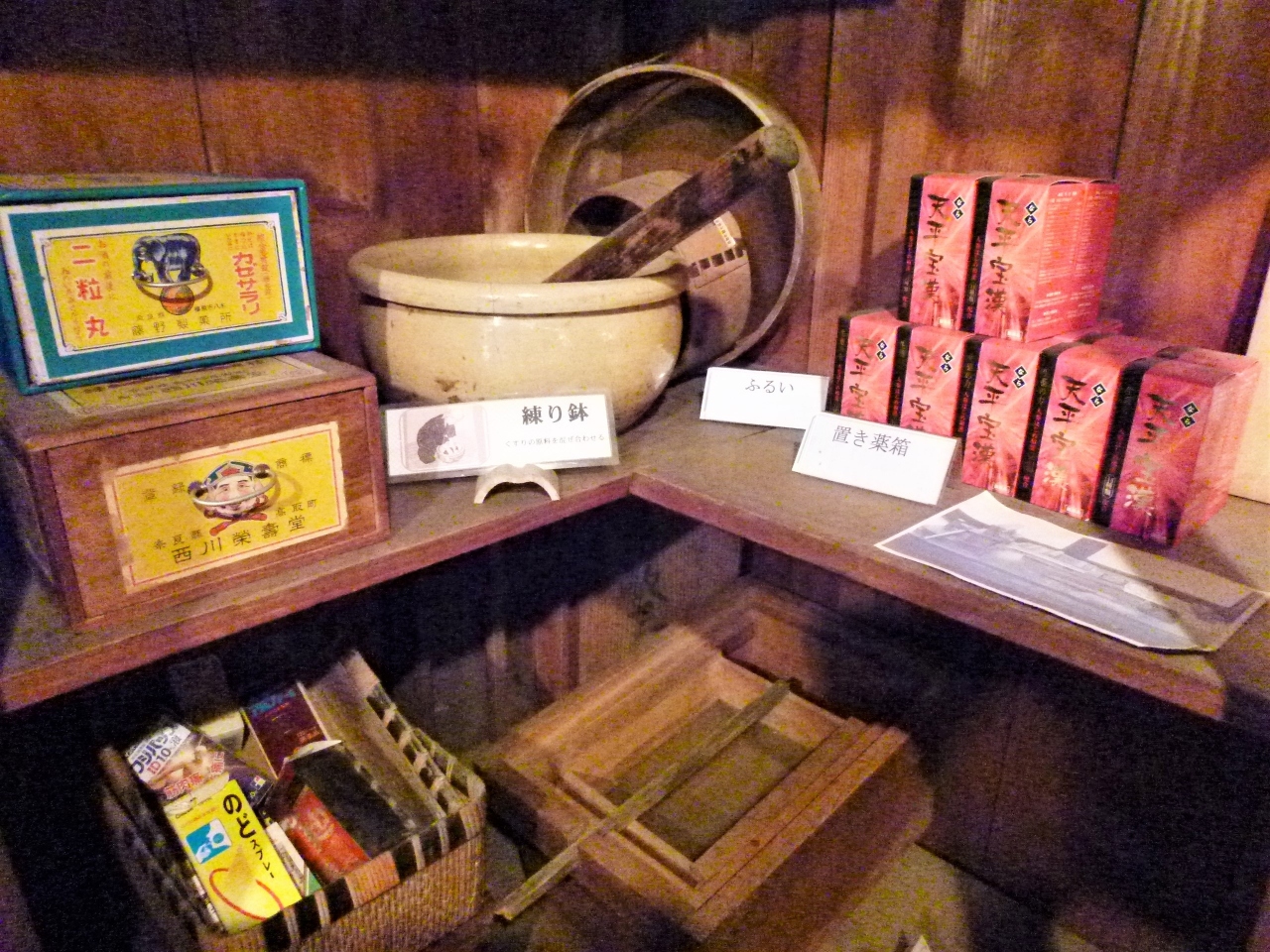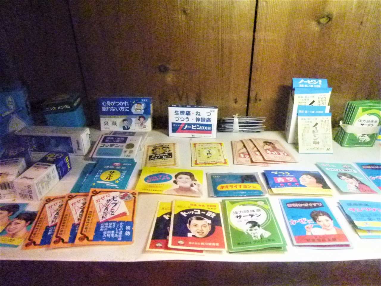 で資料館内には所狭しと(土蔵なので本当に狭い)当時の珍しく貴重な道具や器具に置き薬箱や各売薬なども展示され懐かしいのですが、展示方法が雑でごちゃごちゃして判り難いです?。
