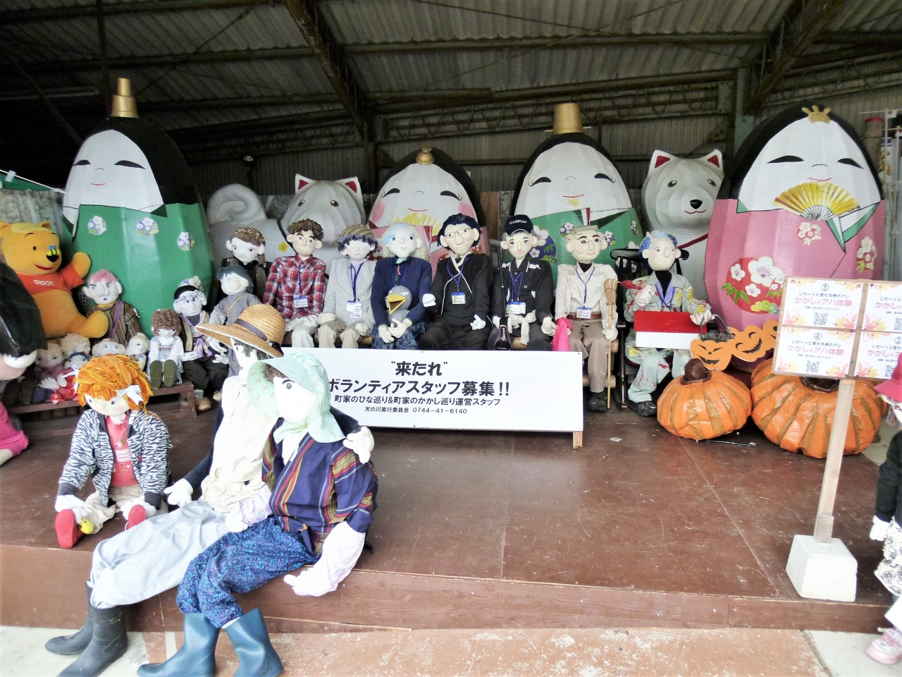ゆえに正面下にはお賽銭箱ならぬカンパ募金箱が置かれその売り上げ金と共に人形達(かかし)の製作費に充てられるようですね。