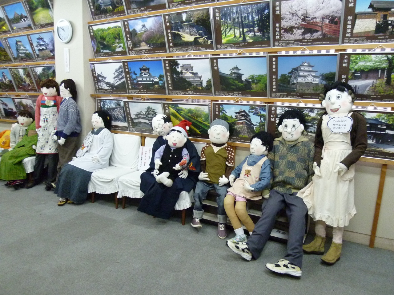 街の駅城跡や隣の資料館内外とくすり資料館に展示されていました~、どれも顔の表情がとてもユニークで面白く、見るだけでも心が和んで来ますよ!。