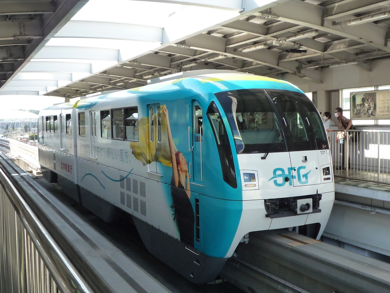 那覇空港駅から浦添市・てだこ浦西駅まで19駅を結ぶ全長17、0kmの跨座式モノレールでワンマン運転の2両編成の車両で約40分掛けて走ります。