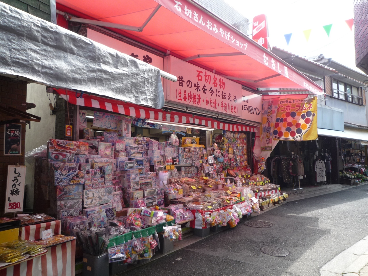 いしきりさんを参拝した後はその御利益を御裾分けする為に気持ちを新たかに土産などの買い物をしたり、一息付くお茶や食事をする為の個性豊かな店舗がいっぱい建ち並んで参拝客を待ってます。