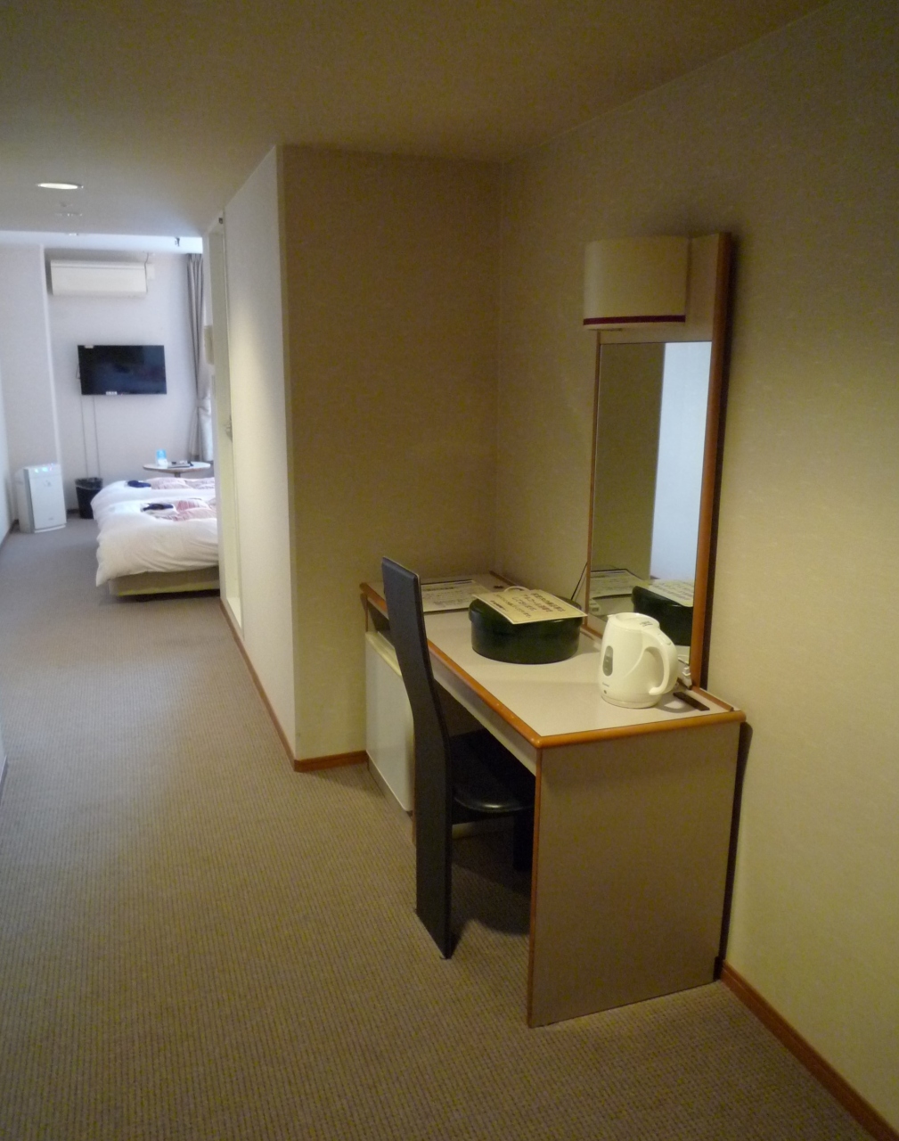 唯一好かったのはやっとツインルームに宿泊が出来たことぐらい?~、でも部屋のど真ん中に柱が出っ張る変形的な部屋の配置でした。