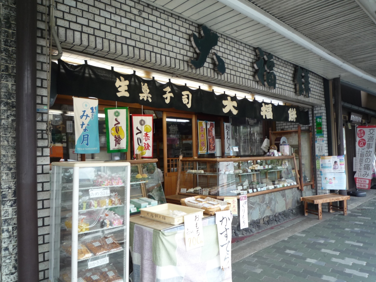上千本商店街の中、ゑんま堂からも近い「生菓子司・大福餅老舗」は昔ながらの店構えで判り易いです。