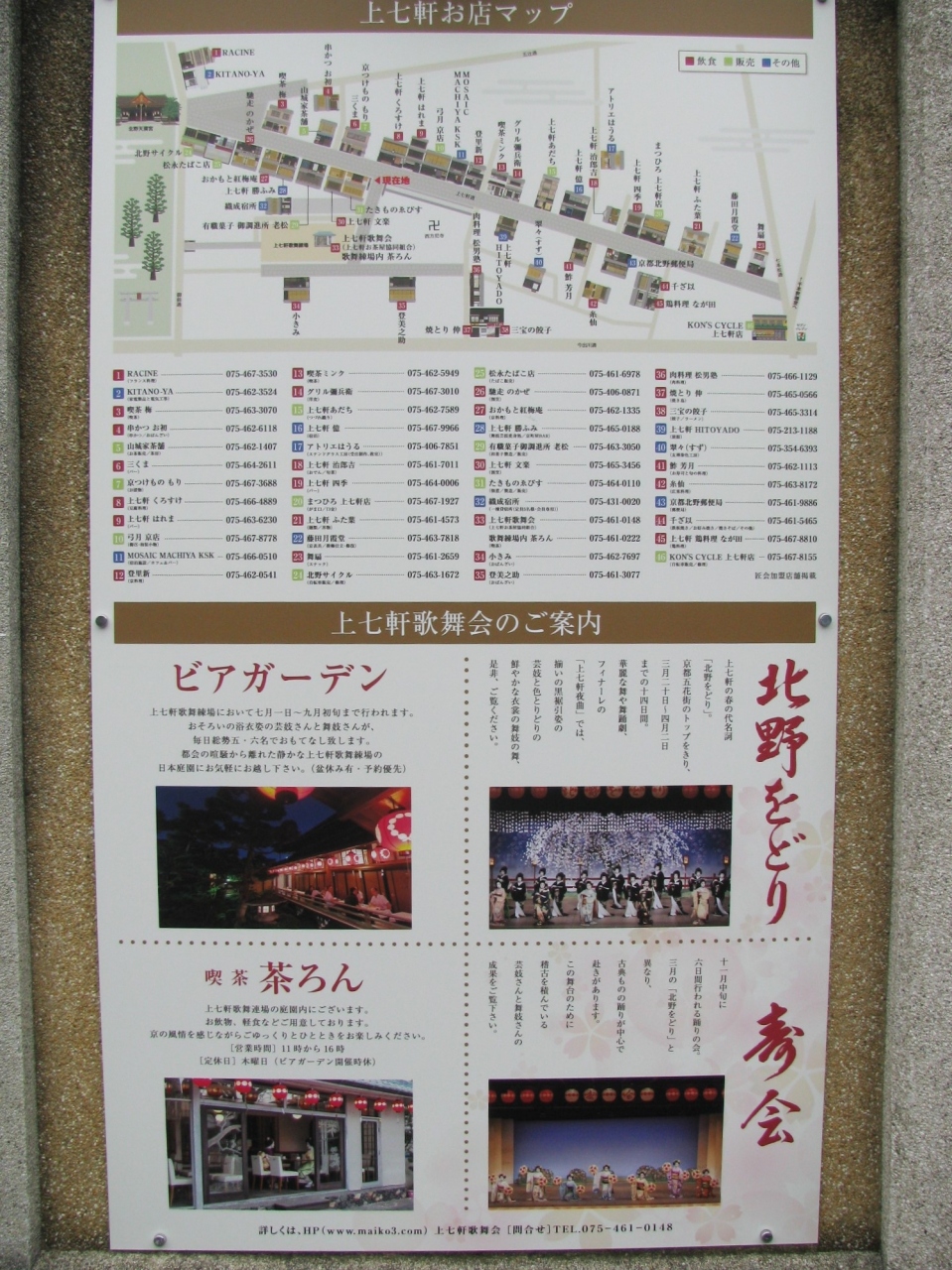 戦前まではお茶屋50軒、芸子・舞子合わせて60名に娼妓もいたようですが、終戦後は大半が転廃業し、西陣織の衰退も重なり芸妓数も20名以下に落ち込んだようです。