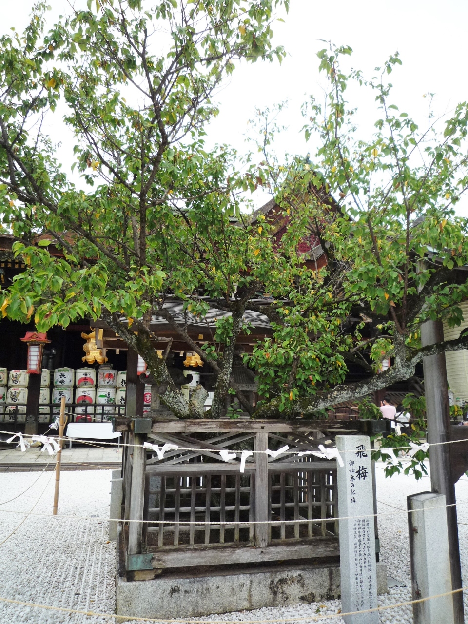 一の鳥居から楼門までの左側には梅苑が広がり、絵馬舎から三光門までの左は庭園、本社前には飛梅伝説の梅の木と松の木が植樹され、東には東門が建ち本社の裏側には林が生い茂るように囲まれています。