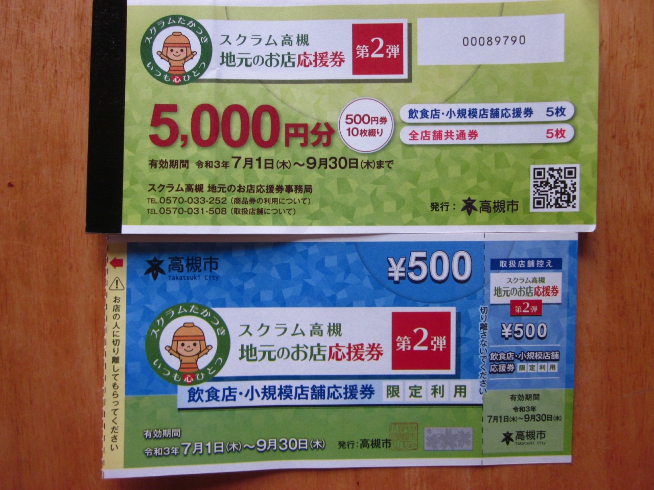 今回は7月から9月まで使用出来る地域振興券の「スクラム高槻」が利用出来るので有難いです。- 旅行時期