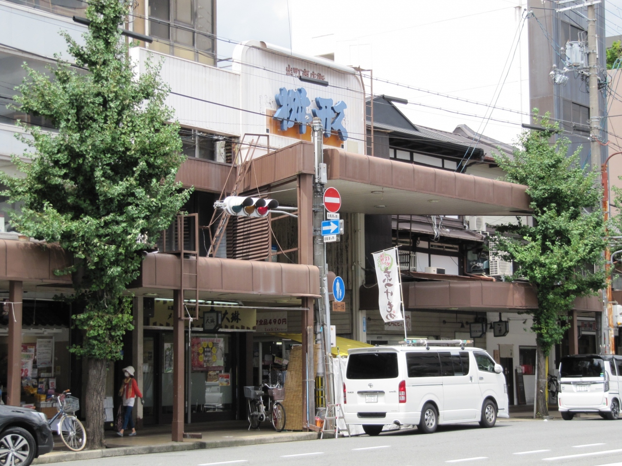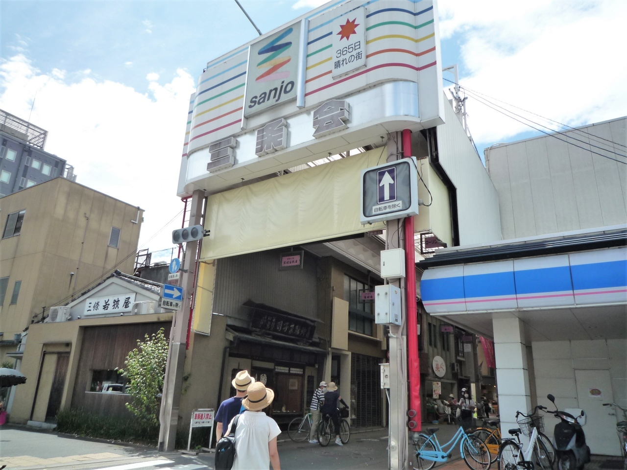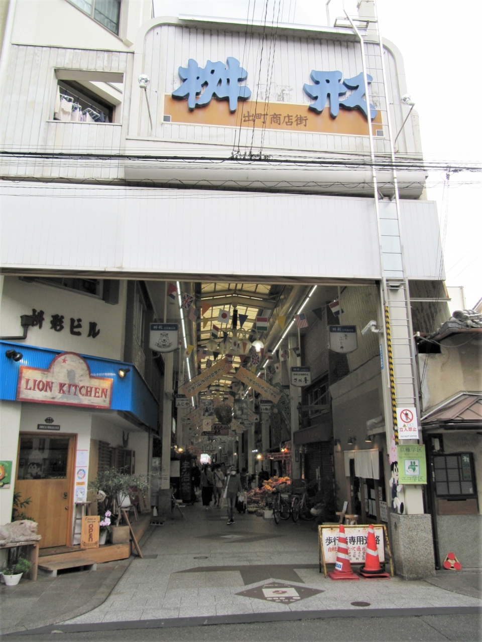 市バス河原町今出川バス停下車、河原町通沿いに面し桝形通にアーケードが付いた商店街が「桝形商店街」で通称・出町商店街とも言います。