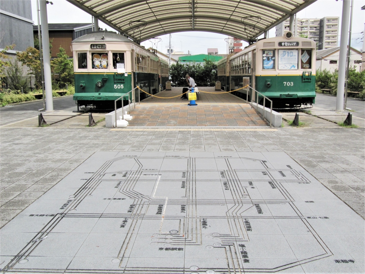 梅小路公園内の中央に旧京都市電が4両(505形・703形・890形・1605形)と、プラットホームにアーケード付きで展示がされてる「市電の広場」は懐かしい。