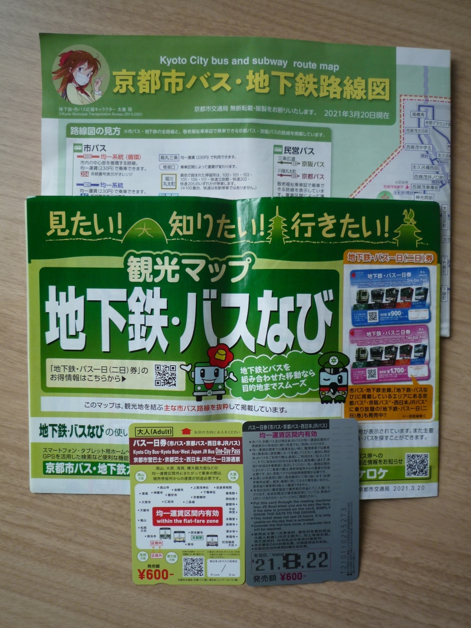 また、大原・鞍馬貴船・洛西・山科醍醐・淀方面まで行くのであれば「地下鉄・バス一日乗車券」がお薦めで¥900とかなりの割安です。