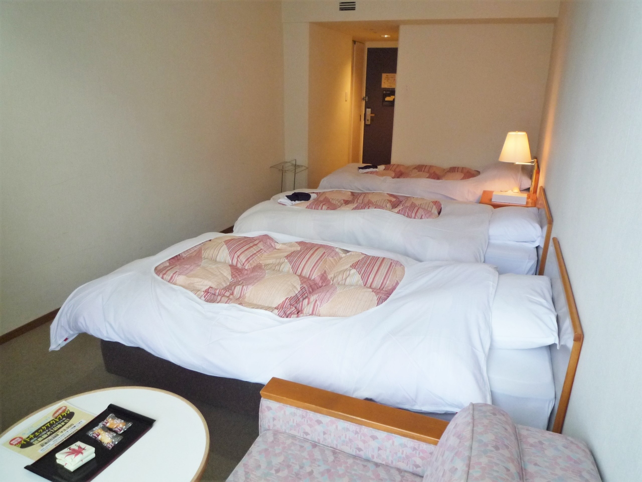 部屋は洋室・ツインルームを予約しましたが、3ベッドルームなので窮屈な為に使い勝手は悪かったです。やはりベッド1台分が部屋を狭くして圧迫感がありました。