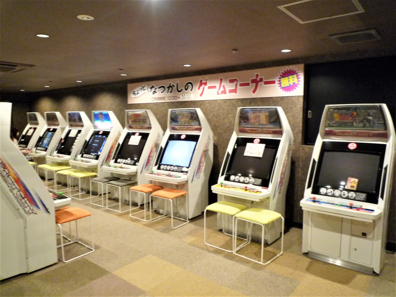 更に、ゲームコーナーでは昭和の懐かしいTVゲーム機が並んで、しかも無料で遊べるのは超ー嬉しいサービスです!。