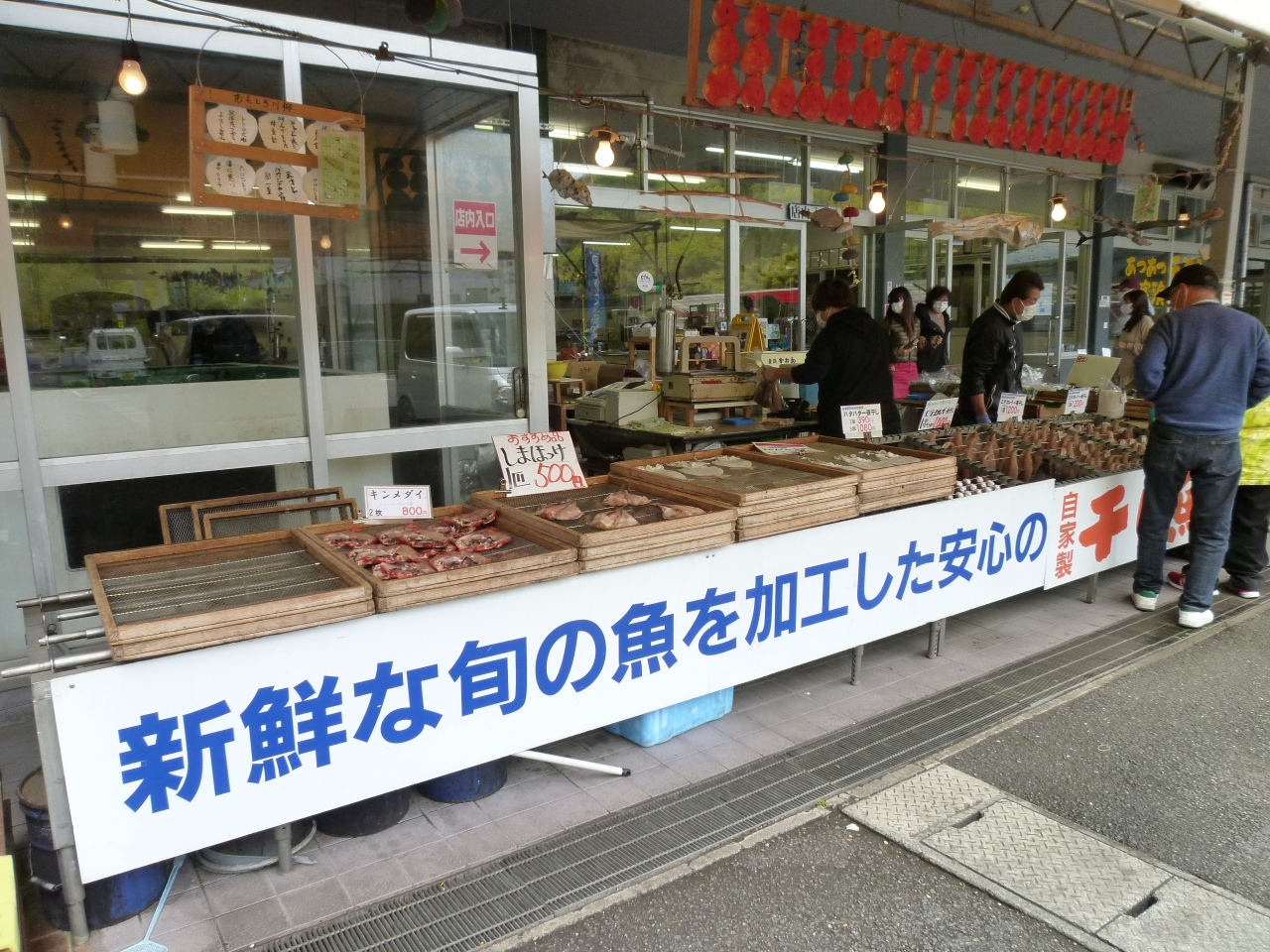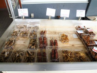 地元の舞鶴で水揚げされる魚介類を干し物などに加工した一夜干しやみりん干しは店頭にいっぱい並んでます。