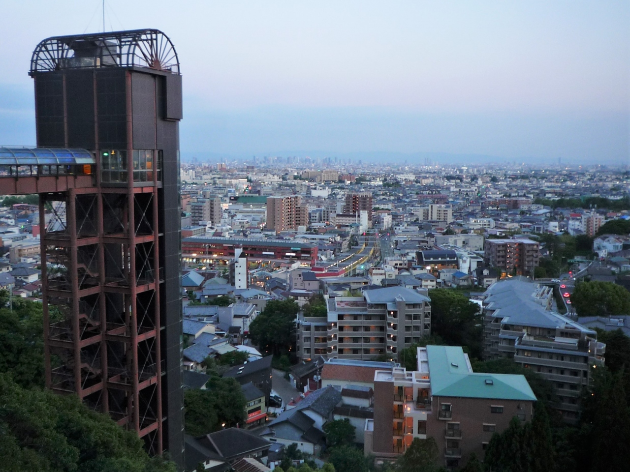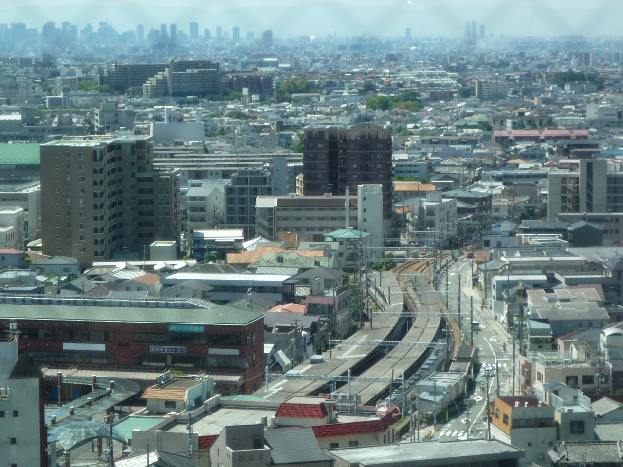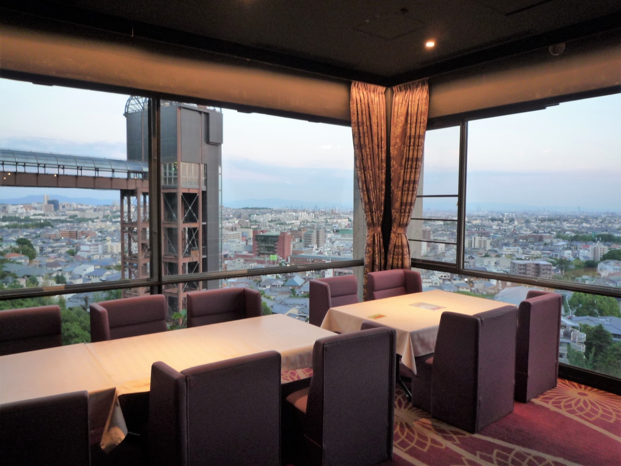 また、素晴らしいのが窓からの眺望~、遥か眼下には大阪の街並みが広がります。陽が長い季節は夜景などは無理ですが、それでも夕暮れ時の眺望は味わい深いものがあります。