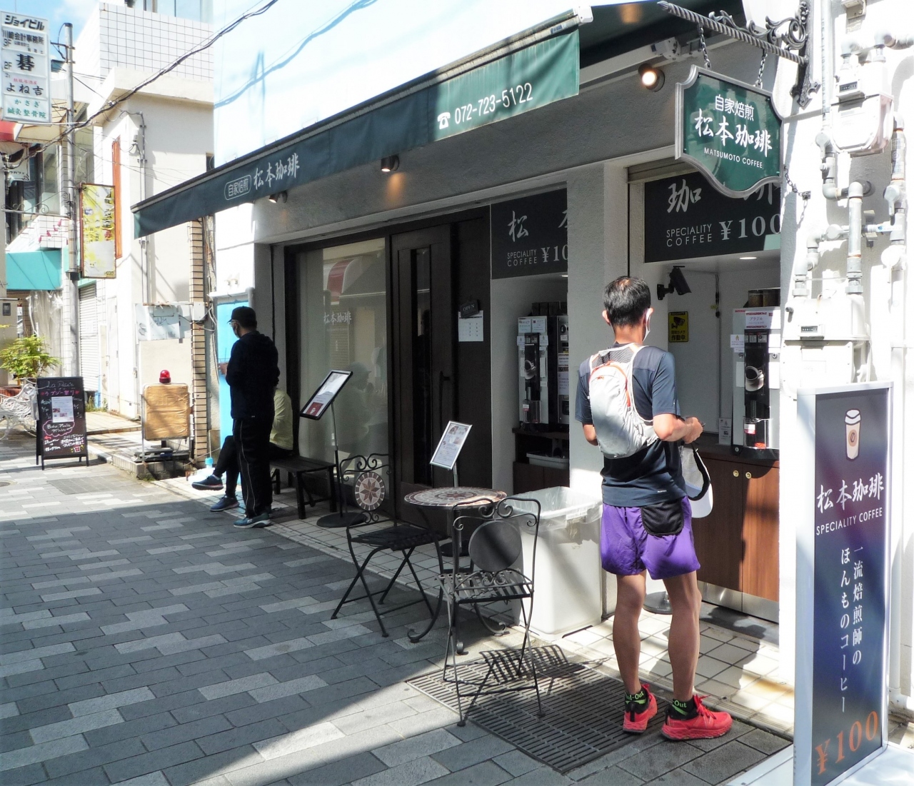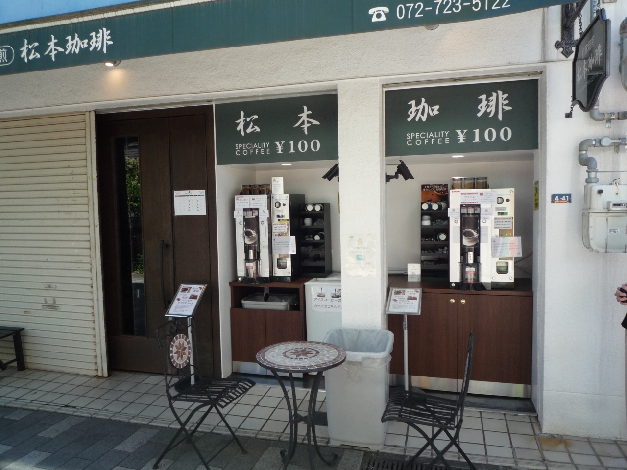 箕面駅から徒歩で3分、みのお本通り商店街に在る自家焙煎珈琲の「松本珈琲」は洒落た外観と香ばしい珈琲の匂いが目印!。