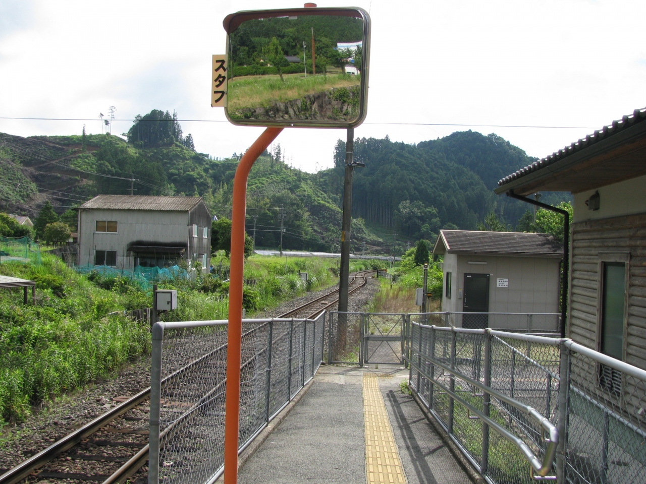 駅構内は終着駅の為櫛形ホームの2面2線の地上駅、8両編成がが停車できる長いホームの先端部が駅舎と改札口。