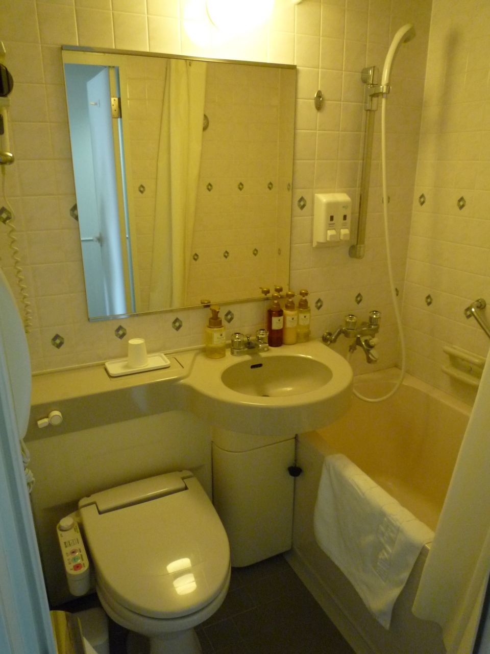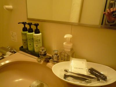 トイレ&バスルームはユニットタイプですが広めなので圧迫感は感じません。シャンプー類も普通以上の物が置かれてました。但し、大浴場を利用するので今回はパスです。