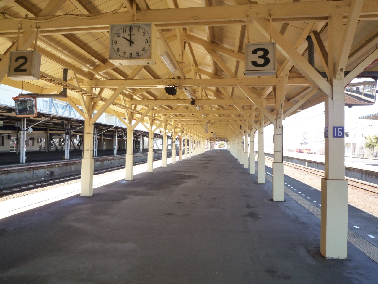 ホームへは跨線橋にて1面2線の島式ホームの地上駅、上下列車共に1番乗り場を使用してますが、且つては駅舎に直面する1番乗り場だったのですが面影だけが夢の跡です。