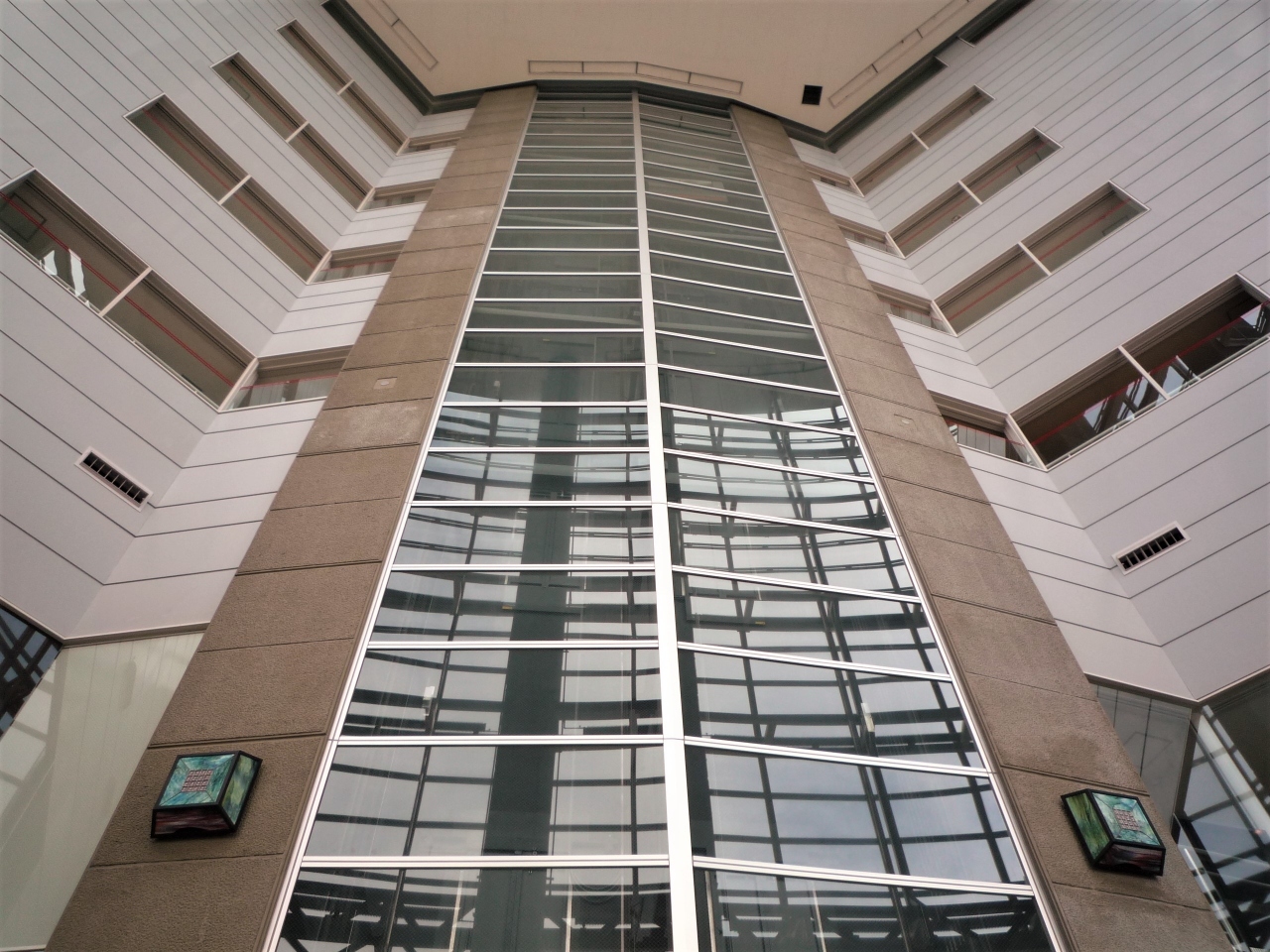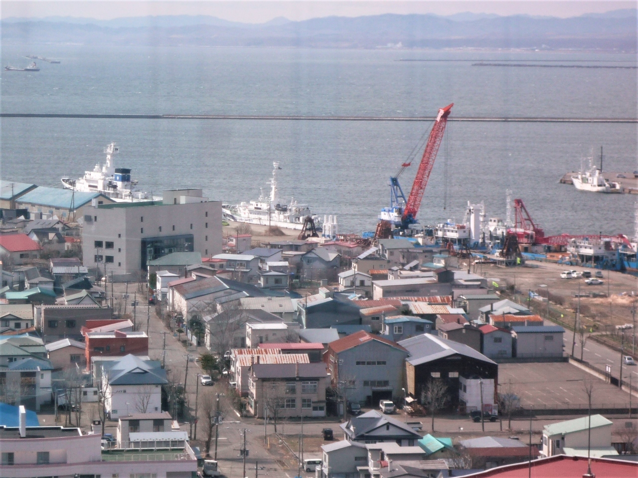幣舞橋を渡って正面に観えるロータリーの時計の上に立つガラス張りの10階建ての建物が「釧路市生涯学習センターまなぼっと」で、その最上階に在るのが展望台です。