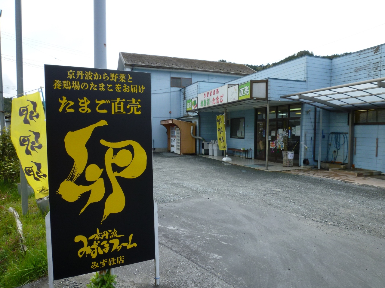 京都縦貫道・京丹波みずほICから直ぐ右手に曲がれば「卵直売みずほファーム」と看板が上がっているので判り易いです。