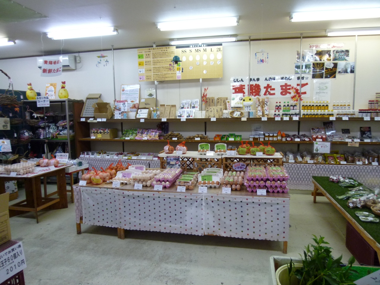 店先に決まった駐車場は無いので適当に皆さん付けてます~、店内は正面に直ぐ自慢の卵がパック付け販売されてます。