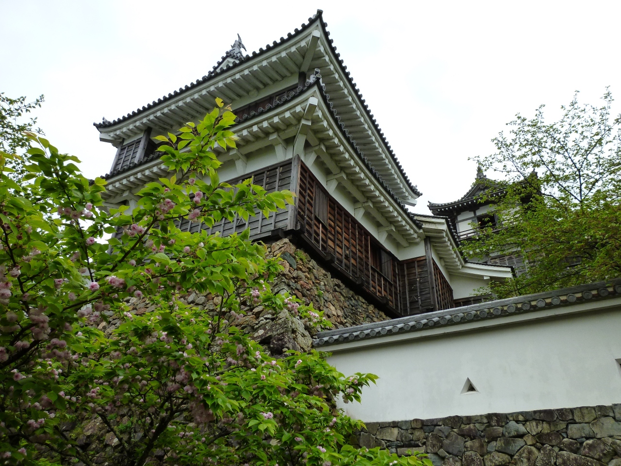 天守閣は3層4階建ての大天守と小天守から成る連立式望楼型で、近世初期の外観を忠実に再現した復興天守で昭和60年に完成。
