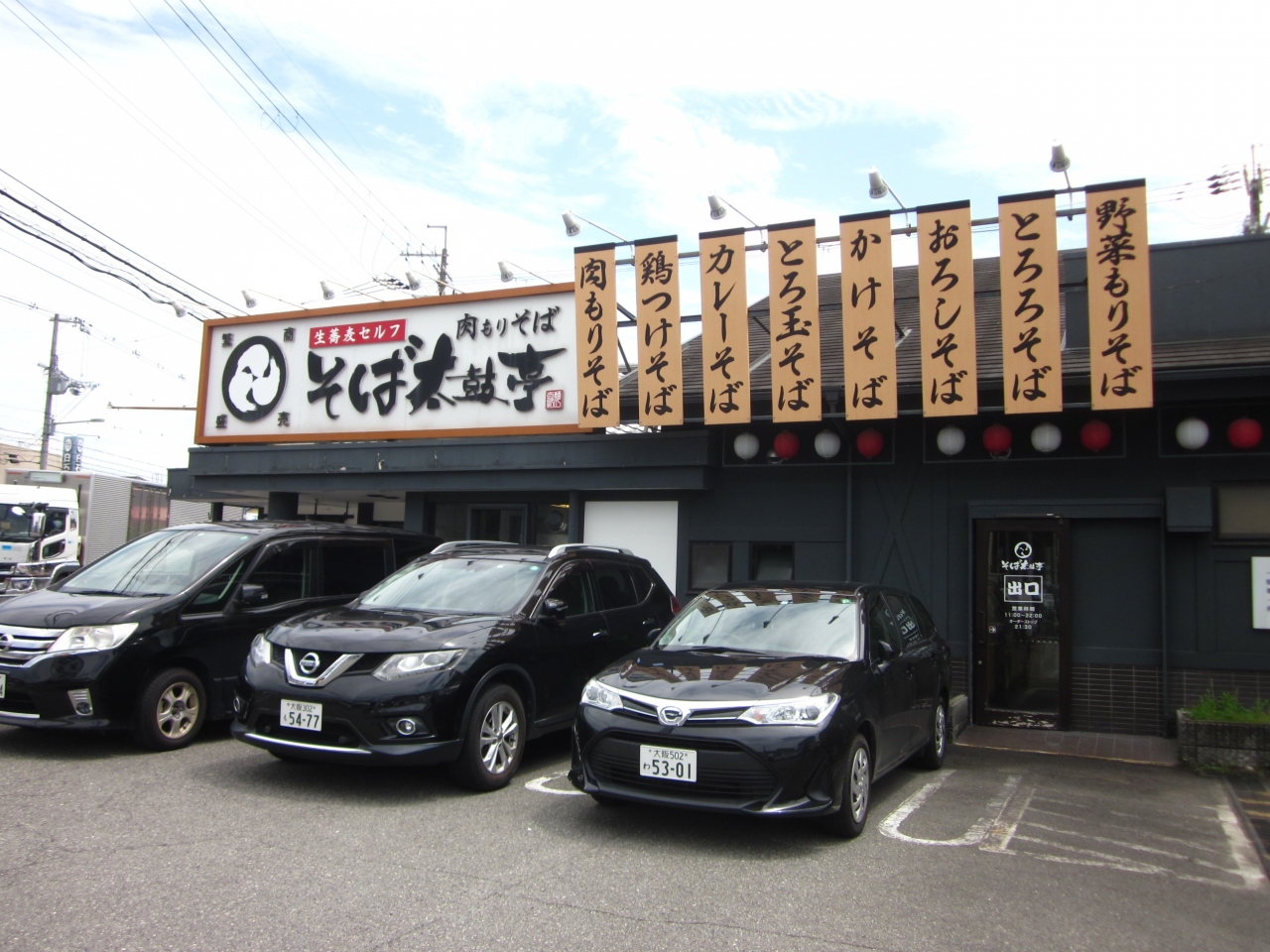関西ではうどんの太鼓亭を展開している企業で、以前はセルうどんのさぬき金毘羅製麵として営業してましたが亀製麺が出店した影響で、そば太鼓亭に業務変更をしそれなりに成功した店舗だと思います(駐車場の客足を観れば一目瞭然です)。