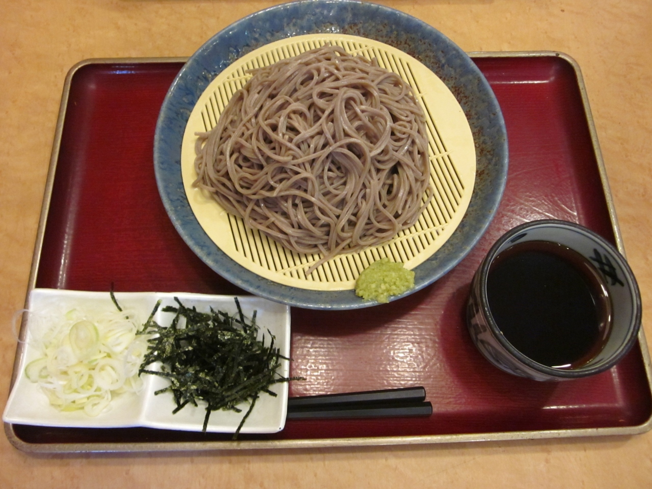毎回、温かい蕎麦をいただくのですが、今日は暑いので冷やしのもりそば大盛¥540にしました。