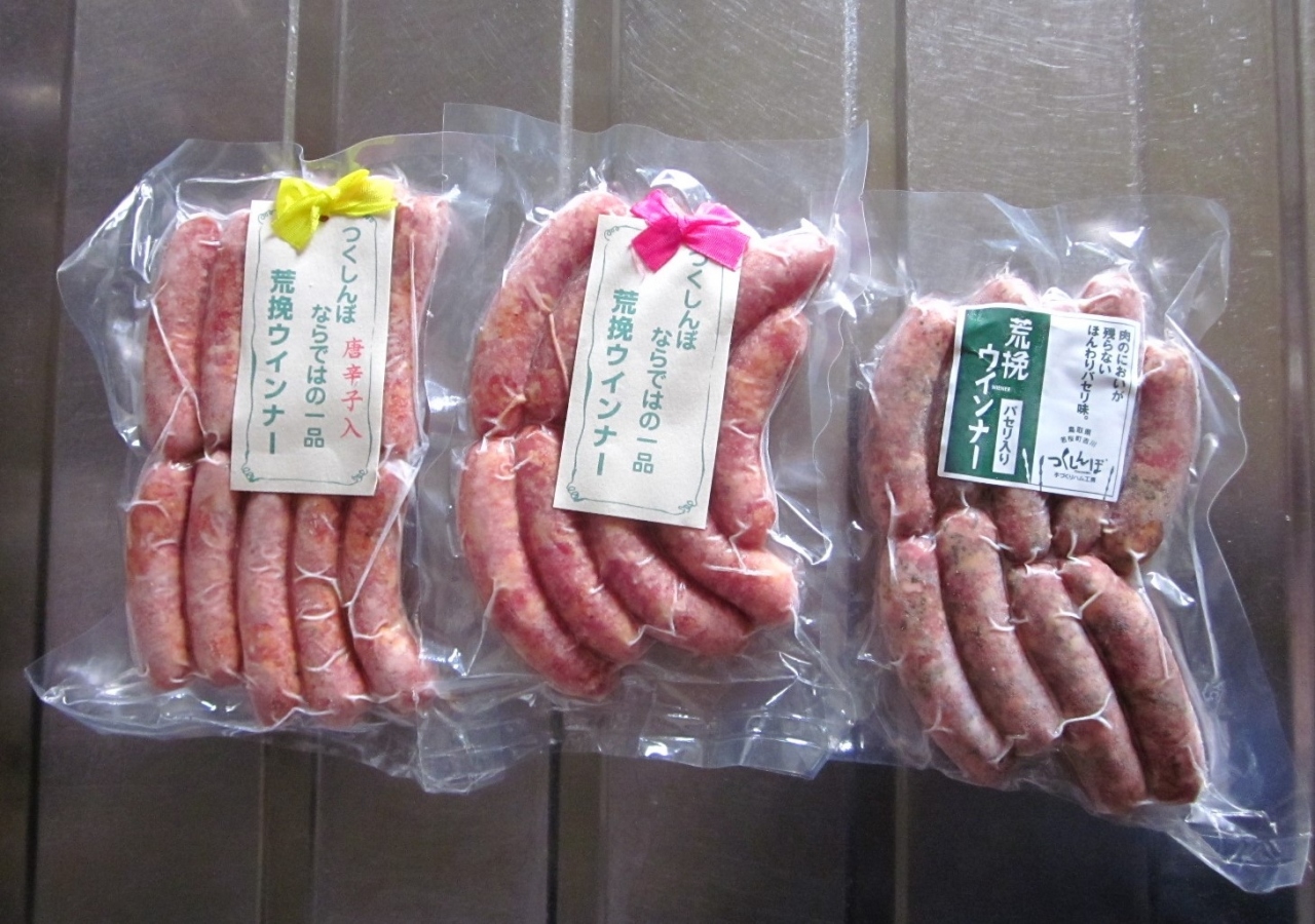 若桜町の”手作りハム工房つくしんぼ”とありました~、若桜町の吉川地区と言う空気と水の美味しい大自然の中で手間ひま掛けて育てた三元豚を自分達で捌いて、添加物も一切使わず加工する手作りのソーセージ・ハム・ベーコンは大量生産が出来ないしない安全な商品だとありました。