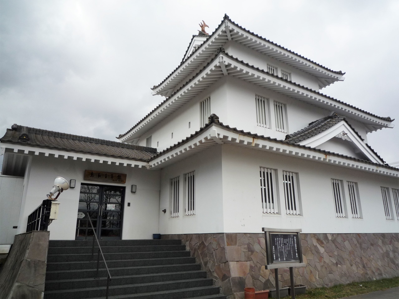 出入口は3層階天守閣を模したようで、入館料は無料ですが記帳は必要です。