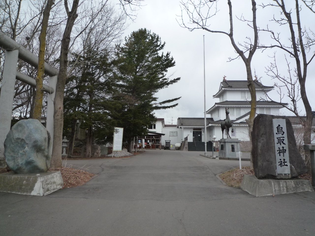 釧路駅からだと路線バスで鳥取神社前バス停・鳥取大通4丁目で下車、又は空港連絡バスだと鳥取大通5丁目バス停下車で徒歩にて7分ぐらい、JR根室本線・新富士駅下車徒歩で15分ぐらい、全て鳥取神社を目印に来れば辿り着ける「鳥取百年館」です。
