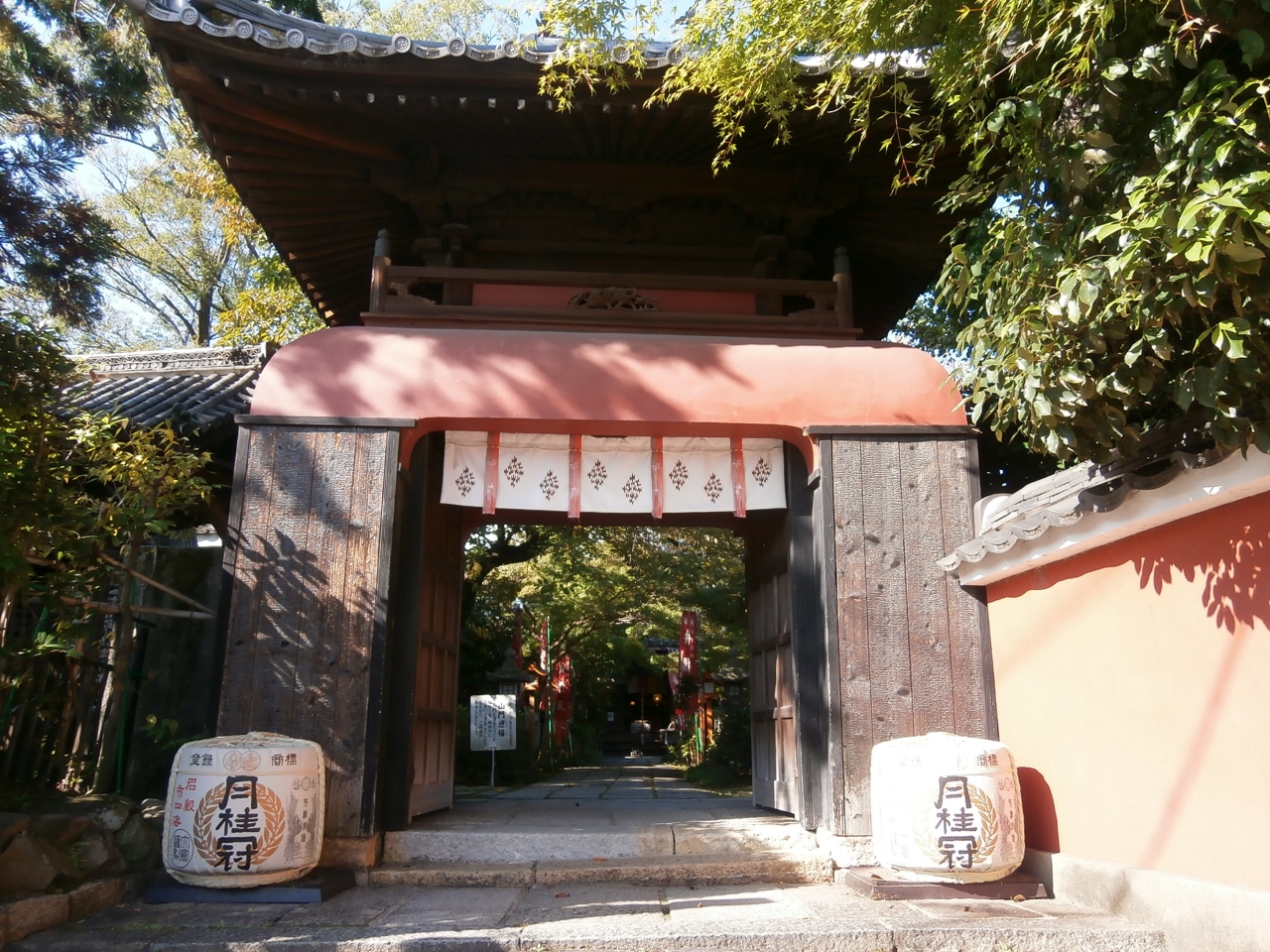 京阪電車・中書島駅下車、商店から住宅地を抜けて朱色の土塀が見え始めたら濠川沿いに建つ「辯財天 長建寺」、愛称は島の弁天さんと市民から親しまれています。