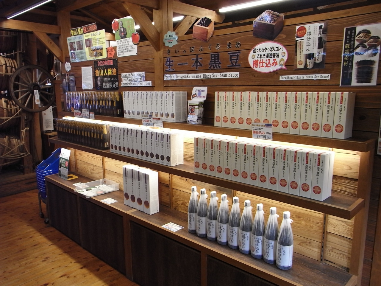 直場所は各コーナーごとに商品展開がされているので醤油、調味料醤油や露、金山寺味噌などが棚に並べられ、商品説明も判り易いので自分に合ったものが選び易い。
