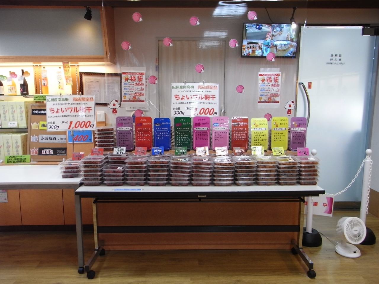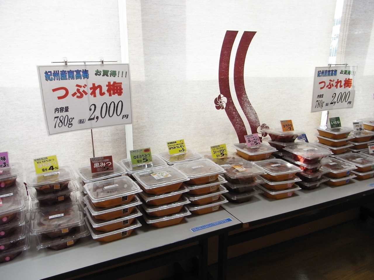 また、以前よくあったタイムサービスも無く、毎回購入するお得な訳あり商品”つぶれ梅780g”も¥2000とお得感が減少してました?…(以前は同g¥1500、または団体さんタイムサービス同g¥1000でした)。
