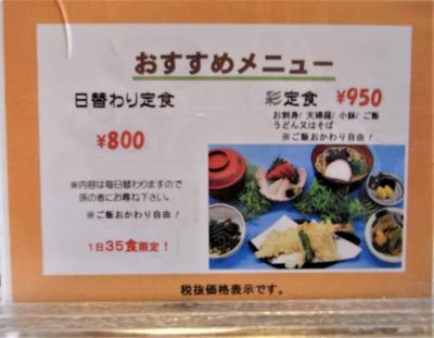 平日のみ日替わり定食¥800・彩定食¥950は数量限定で、平日限定メニューはも寿司天婦羅定食以外は¥1000以下でいただけるのでボリュームと共にお得感がありますね。